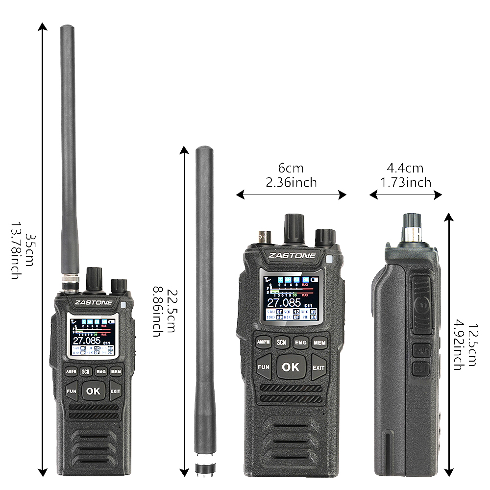 Zastone CB-58 Handheld Walkie Talkie 27MHz CB Radio HAM 4W 12V all 240 CB channels 26 to 27MHz 4000hAm